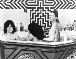 Rub-a-dub-dub, Mick in the tub with Anita Pallenberg and Michèle Bréton on the set of Performance.